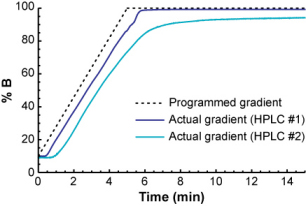 The gradient profile actually produced by your HPLC instrument can be very different from the one you program it to produce. Unless the differences are properly measured and taken into account, they can cause run-to-run variation in your retention times and unexpected shifts in retention when transferring methods between HPLC instruments.