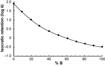 Suppose you measured the isocratic retention of a compound over a range of mobile phase compositions...