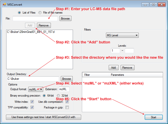 Try it out! Right click the link below and select "Save link as..." to download an example mzXML file. It was acquired on a 2.1 x 100 mm column with a 0.4 mL/min flow rate in a gradient from 5% to 95% B in 10 min. The instrument dead time was 0.146 min.